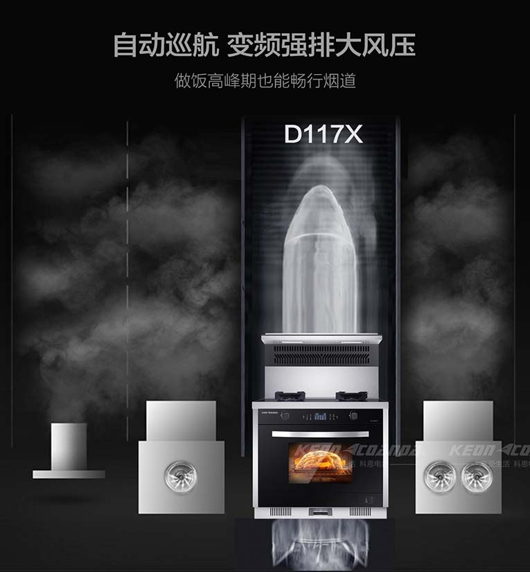 作為10余載高端廚電品牌,科恩電器一直引領(lǐng)著集成灶行業(yè)的發(fā)展,始終秉承著“為顧客提供更優(yōu)質(zhì)的廚電產(chǎn)品”。為時刻應(yīng)對消費者需求,科恩電器不斷創(chuàng)新研發(fā)新品,積極布局集成灶產(chǎn)業(yè),以“蒸烤消一體、變頻大吸力、模塊化、冰箱門、大容量三抽”五大核心的產(chǎn)品矩陣優(yōu)勢引領(lǐng)廚電行業(yè)風(fēng)潮!科恩智能變頻大吸力集成灶D117X作為新一代廚電產(chǎn)品,憑借擁有≥720Pa大風(fēng)壓智能巡航系統(tǒng),高達21m3/min爆吸技術(shù),為用戶們有效解決了控?zé)煛⑴艧焼栴},滿足不同的烹飪方式和開放式廚房的無煙生態(tài)環(huán)境而大受歡迎!