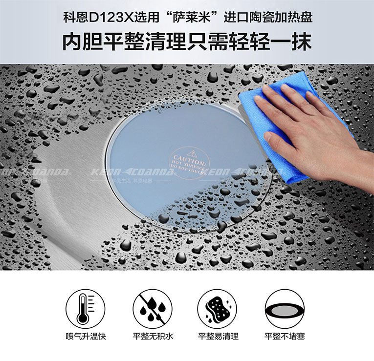 值得一體的是,集成灶十大品牌、廚電行業(yè)十大品牌科恩D123X蒸烤消一體變頻大吸力集成灶蒸箱采用噴氣式4D立體蒸,薩萊米陶瓷加熱盤(pán),避免了蒸盤(pán)在蒸制過(guò)程中排水孔容易堵塞導(dǎo)致的故障,D123X蒸烤消一體集成灶噴氣升溫快、平整無(wú)積水、易清理、不堵塞,內(nèi)膽平整清理只需輕輕一抹就能潔凈。