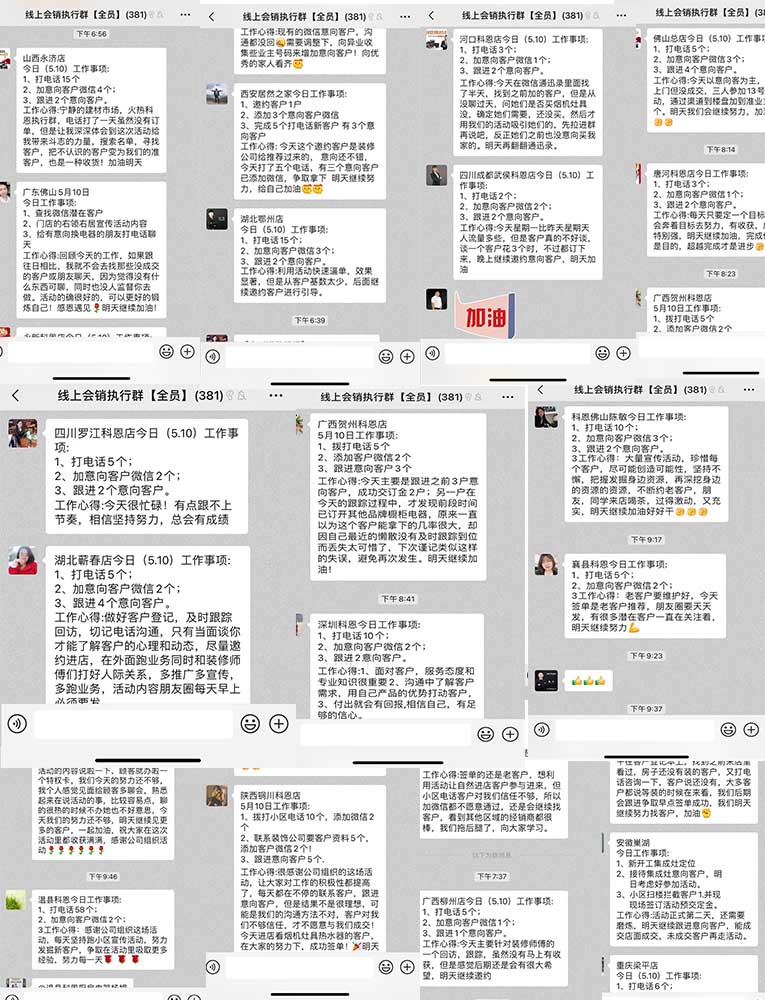 微信超級(jí)廠購(gòu)會(huì),定計(jì)劃,定目標(biāo),提升學(xué)習(xí)力,增強(qiáng)執(zhí)行力,凝聚戰(zhàn)斗力,總部操盤賦能終端,助力于門店市場(chǎng)運(yùn)營(yíng),帶領(lǐng)科恩家人一路摸高,高效打造有溫度有實(shí)體感的戰(zhàn)斗集體。