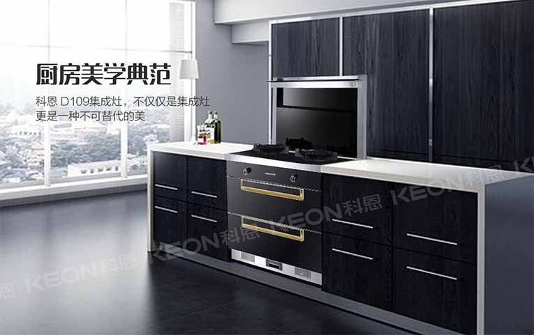 灶藝不凡,集成灶十大品牌、廚電行業(yè)十大品牌科恩集成灶只為締造安全舒適的健康廚房,科恩D109消毒柜款集成灶,不僅僅是集成灶,更是一種不可替代的美,90°T型機(jī)頭設(shè)計(jì),攏煙效果更出色,可拆卸科恩達(dá)網(wǎng)板,黑晶防爆玻璃雙層疊加式冷凝壁,冷凝油煙效果更佳,下置油煙過(guò)濾網(wǎng)板,99.9%油煙分離率,經(jīng)過(guò)特氟龍涂層工藝,更加經(jīng)久耐用!科恩D109集成灶強(qiáng)大的功能,為您締造一個(gè)靜雅的廚房環(huán)境,靜謐無(wú)油煙,讓您輕松心情的同時(shí),充分享受烹飪帶來(lái)的樂(lè)趣。