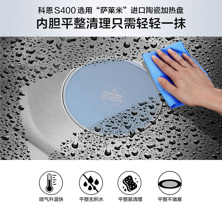 作為行業(yè)翹楚,集成灶十大品牌、廚電行業(yè)十大品牌科恩集成灶深耕行業(yè)數(shù)年,憑借對(duì)廚房痛點(diǎn)的敏銳度與洞察力,潛心鉆研新品及新技術(shù),其中近期發(fā)布的科恩S400智能蒸烤消一體集成灶更是極大的滿(mǎn)足了市場(chǎng)的需求。在“蒸”方面,S400集成灶擁有了不起的“蒸”功夫,從物理角度講,100℃的水蒸氣比100℃的開(kāi)水溫度更高。而130℃的水蒸氣比100℃的肯定具有更多的能量。想要蒸出可口美味的菜,蒸箱就需要滿(mǎn)足“溫度高、蒸汽足”的條件,傳統(tǒng)蒸箱最高溫度只能達(dá)到100℃,很難蒸出理想效果。集成灶十大品牌、廚電行業(yè)十大品牌科恩S400智能蒸烤消一體集成灶采用噴氣式4D立體蒸技術(shù),底部陶瓷加熱盤(pán)加右側(cè)雙孔蒸汽噴射,蒸汽自外向內(nèi),將食物層層包裹,熱蒸合力,全方位滲透食材,短時(shí)間內(nèi)食物即可快速熟透、酥糯。另外,S400集成灶還擁有頂部微晶玻璃體發(fā)熱,頂部不滴水,杜絕冷凝水,清潔更輕松。