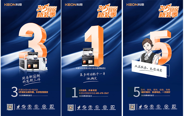 做好的產品,對消費者負責,不止是315,為回饋廣大消費者一直以來對科恩集成灶支持與認可,特開展廚房新國潮,科恩新三件,315廚房新裝季活動,3月1日-3月18日,進科恩全國專賣店,就能享受八大福利特惠!