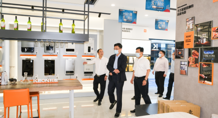 呂副主席等領導一行深入了解企業文化及發展歷程,詳細詢問了企業生產運營、科研創新、品牌特色、黨建工作等方面情況,并重點參觀了科恩大型現代化智能展廳,科恩電器產品優勢和企業發展實力獲得了領導們的高度認可。展廳內功能造型各異的集成灶令領導們紛紛駐足詳探究竟,科恩電器以初心致創新,以品質守匠心,以匠心鑄精工,十三年來專注工藝,用倔強和堅守傳承匠人精神,塑造廚電行業的工匠典范!