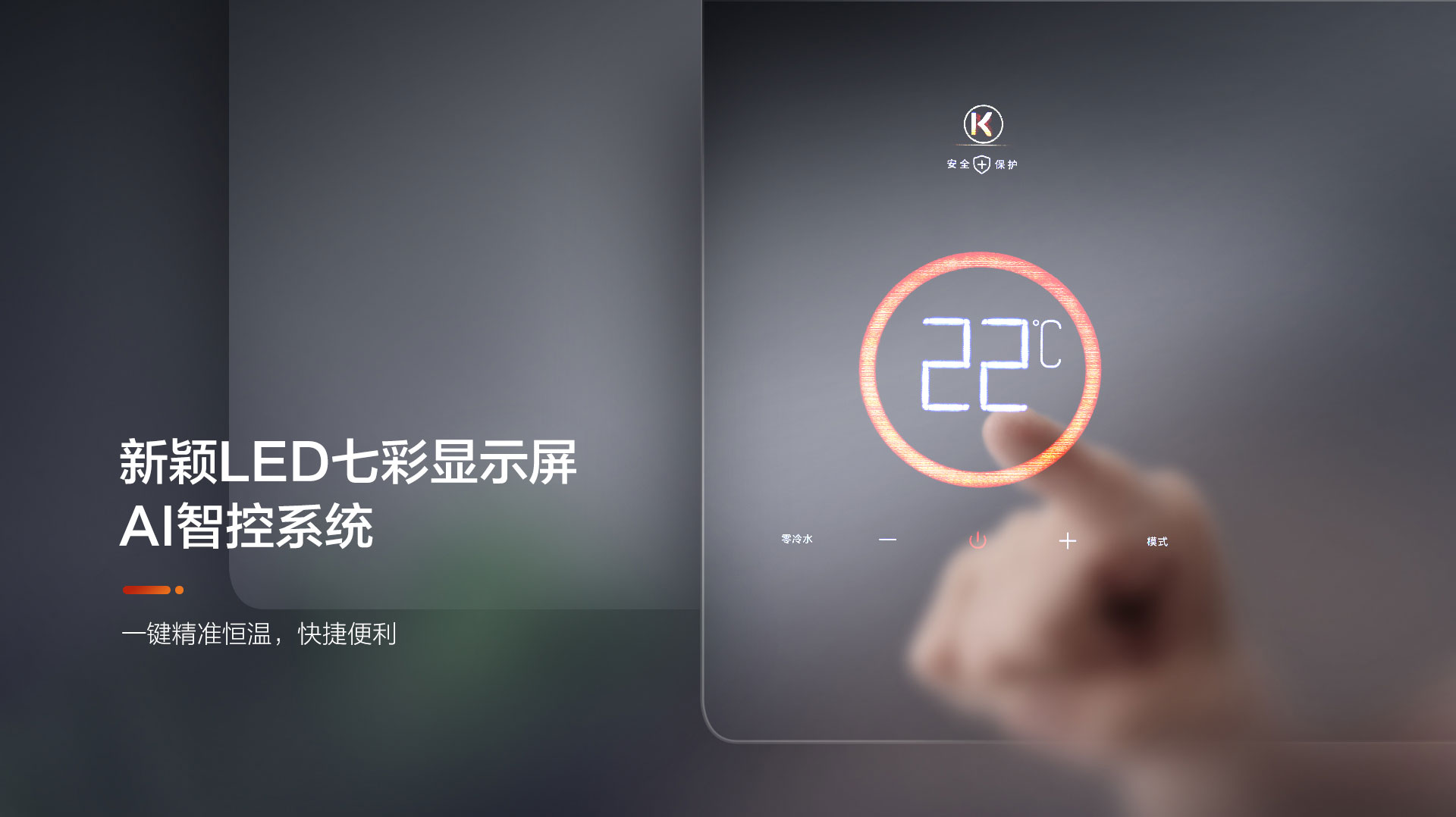 出水溫度不穩定,冬天水太冷,夏天水太熱!再加上全屋多點用水,水量忽大忽小,水溫忽冷忽熱,舒適沐浴的好興致全被打破!科恩18Q6零冷水燃氣熱水器獨有記憶合金水流量傳感器,可根據進水溫度自動調節水流量大小,滿足用戶在不同季節的水溫舒適性的要求,新穎LED七彩顯示屏,搭載AI智控系統,一鍵精準恒溫,快捷便利。