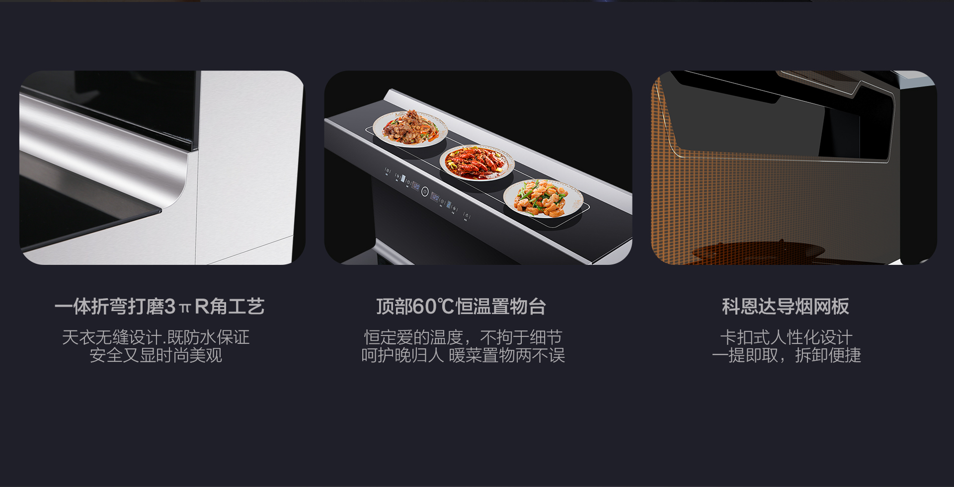 ◆60℃恒溫置物臺,恒定愛的溫度,不拘于細節,可暖菜亦可置物,油鹽醬醋盡數歸置,菜已熱,酒已溫,悉心呵護每一個為愛奮斗的晚歸人!