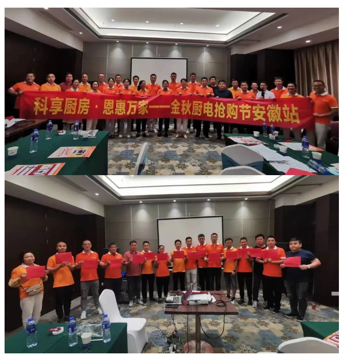 實(shí)操演練和簽訂軍令狀環(huán)節(jié)使得本次啟動(dòng)大會(huì)的氣氛達(dá)到最高潮,至此,科享廚房·恩惠萬家——金秋廚電搶購(gòu)節(jié)安徽站大促活動(dòng)的號(hào)角正式打響!大家斗志昂揚(yáng),信心滿滿,相信依靠科恩總部的戰(zhàn)略指導(dǎo),營(yíng)銷精英的培訓(xùn)督導(dǎo)以及全體科恩人的不懈努力下,本次大促活動(dòng)必將火爆全城!