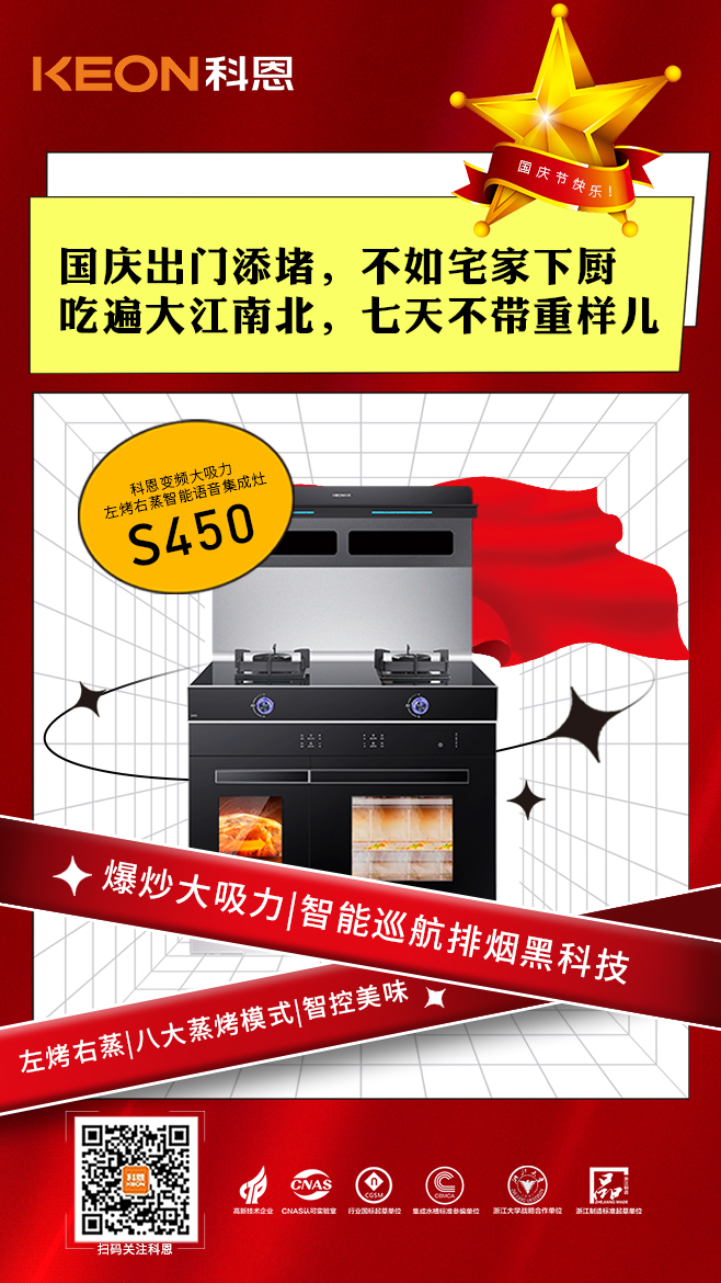 明天就是國(guó)慶七天小長(zhǎng)假了,你是計(jì)劃著去浪跡天涯,跨過(guò)山川大河,人山人海,讓身心徜徉在祖國(guó)大好河山中,還是選擇宅家享受難得的愜意時(shí)光?與其出門(mén)感受人從眾的擁堵,不如呼朋喚友宅家為祖國(guó)慶生,讓科恩集成智慧廚房,來(lái)解決你的“聚會(huì)綜合癥”,讓你的國(guó)慶假期秒殺一眾越過(guò)千山萬(wàn)水去看人山人海的小伙伴們!