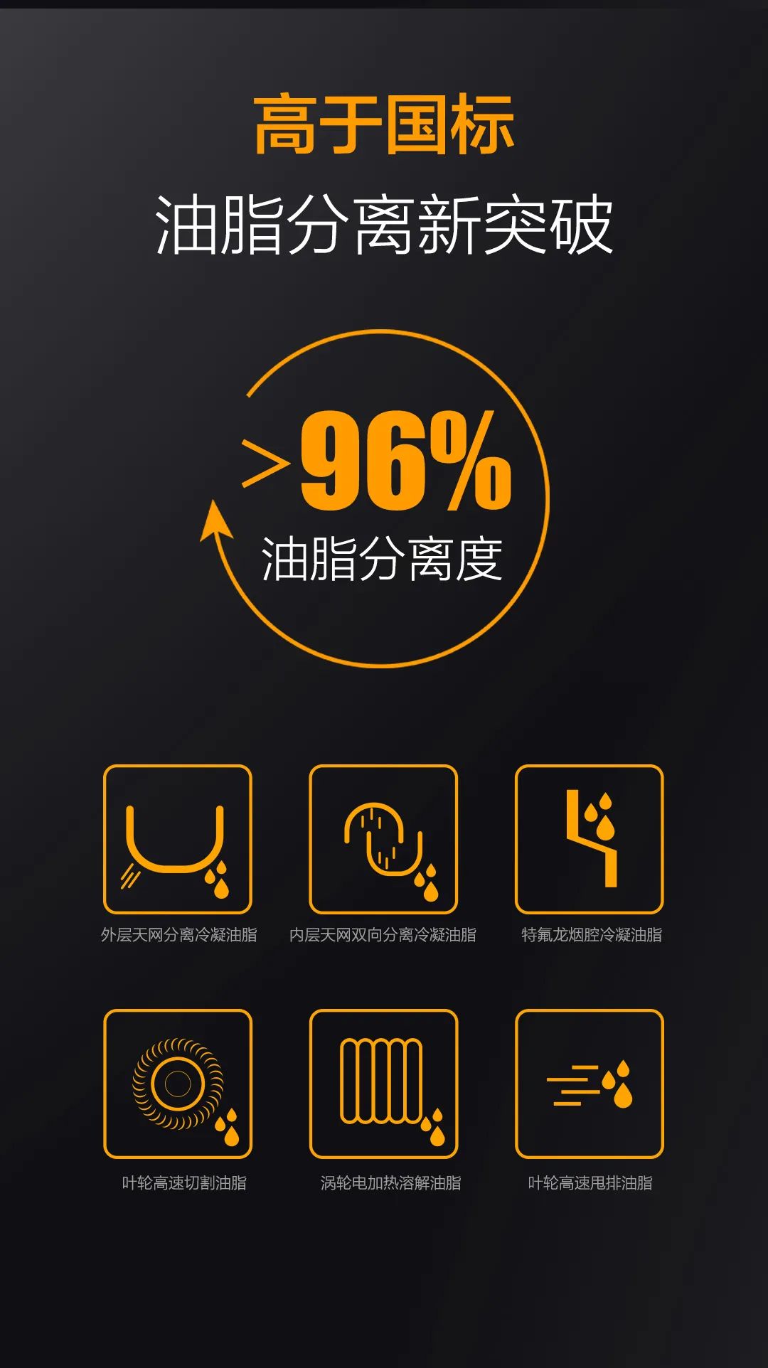 科恩6530免清洗煙機,雙效疊排天網采用易潔太空壓鑄鋁材,經過酸洗-噴砂工藝加之特氟龍噴涂最后高溫燒結,不僅不沾油、易清潔更好打理。同時,能很好的阻燃阻熱!雙效疊排天網將油煙盡數隔離在外,真正做到只吸煙不吸油。煙腔無需清潔,也能潔凈如新!