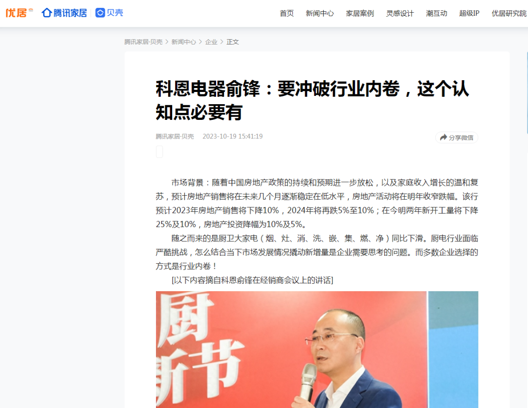 市場(chǎng)內(nèi)卷有兩個(gè)比較明顯的標(biāo)記,一個(gè)標(biāo)記就是價(jià)格被不斷揭穿底線;另外一個(gè)標(biāo)記就是增量客戶不斷消失,大家都開(kāi)始去做存量市場(chǎng)。這兩個(gè)標(biāo)記在廚電行業(yè)已經(jīng)很明顯。