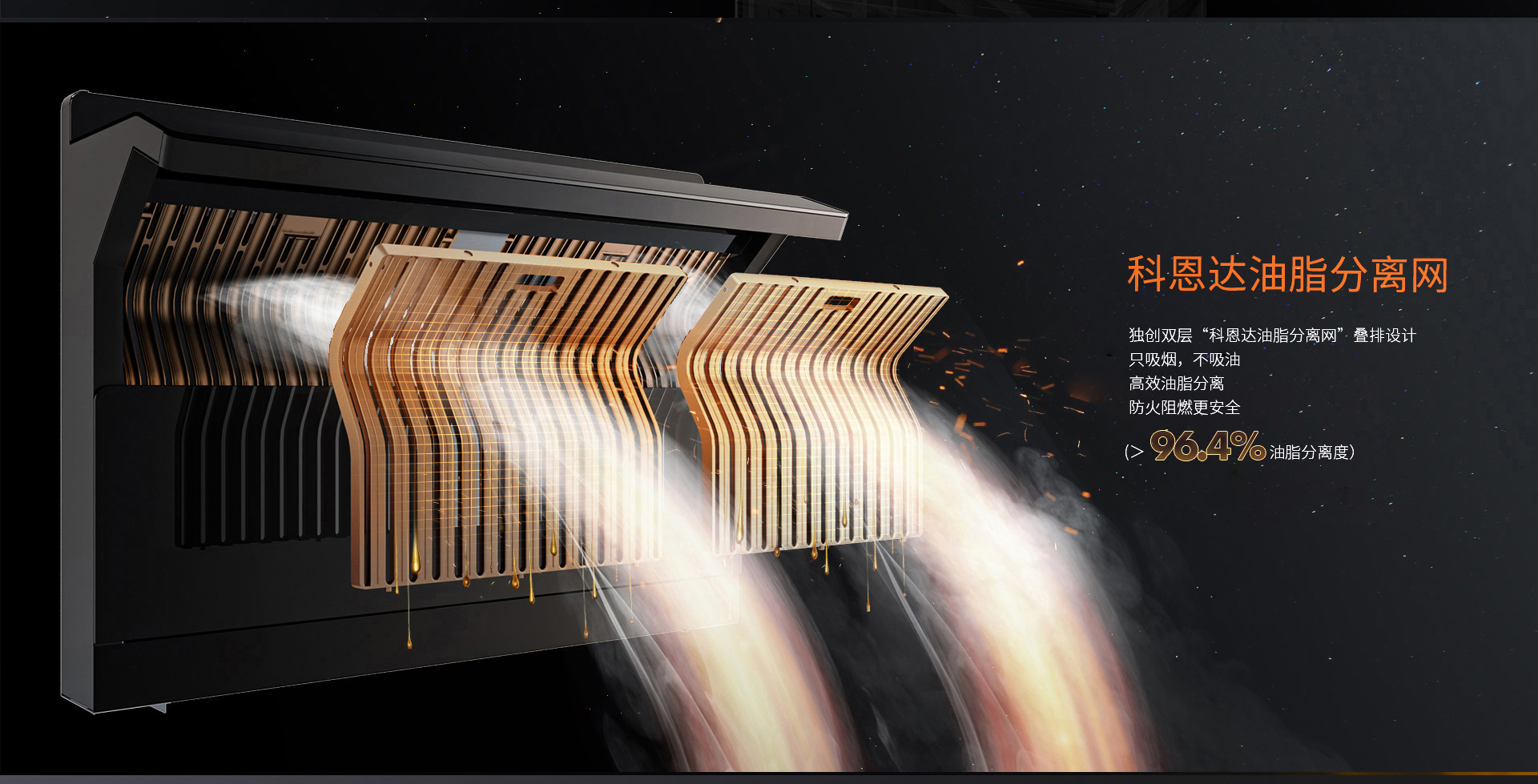 免清洗防爆集成灶選用了科恩達油脂分離網+科恩達平網。