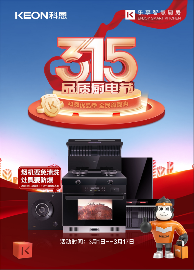 科恩315品質廚電節”正在火熱進行中,全國千城萬店齊獻7重好禮,只為帶給您全新高品質廚房生活。