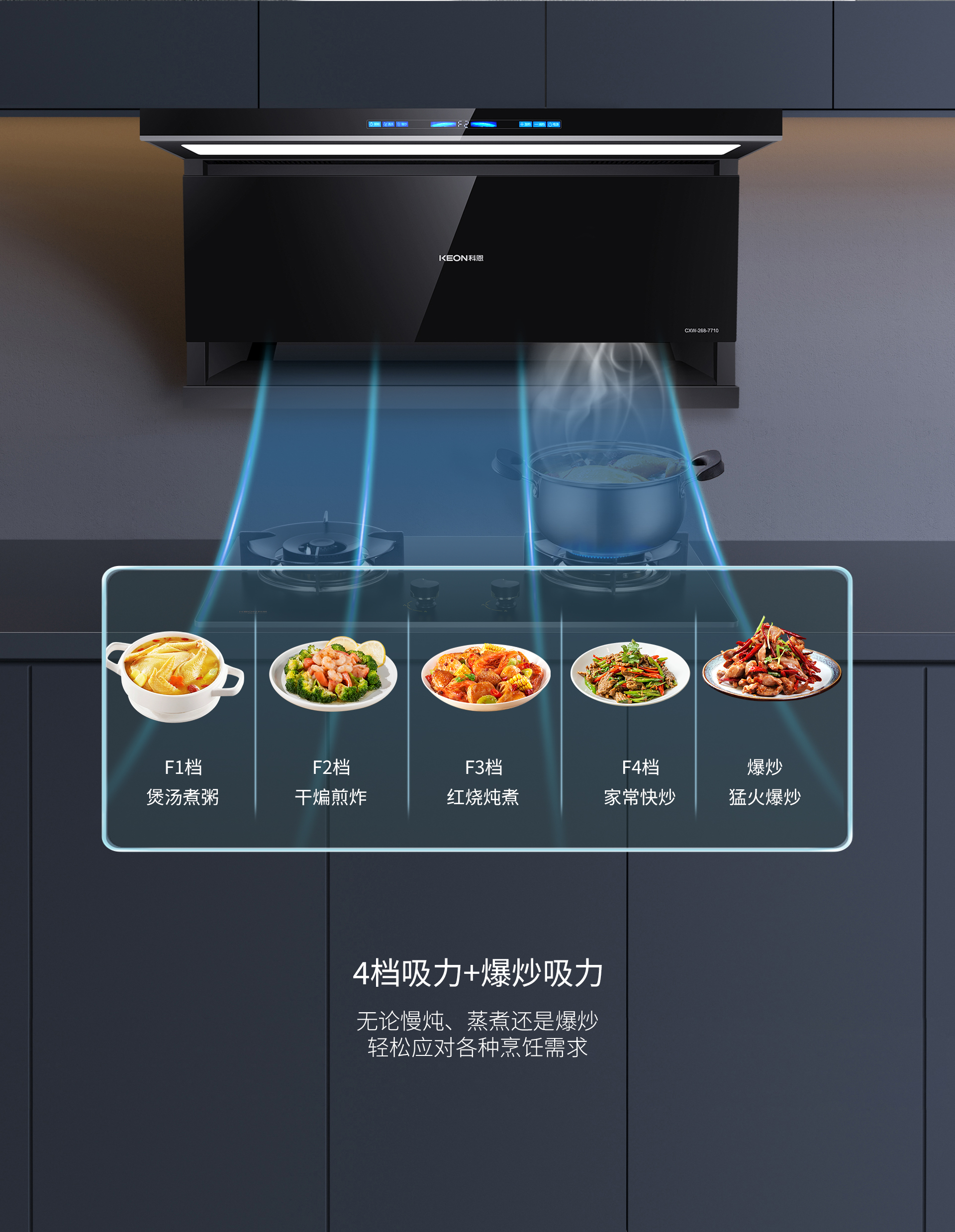 是時候展現真正的高品煙機了!科恩仰望系列7710智能聯動油煙機,開啟高品廚房生活!