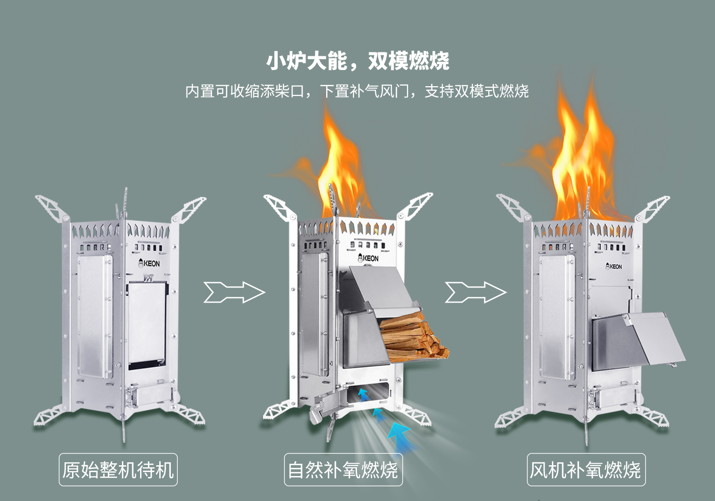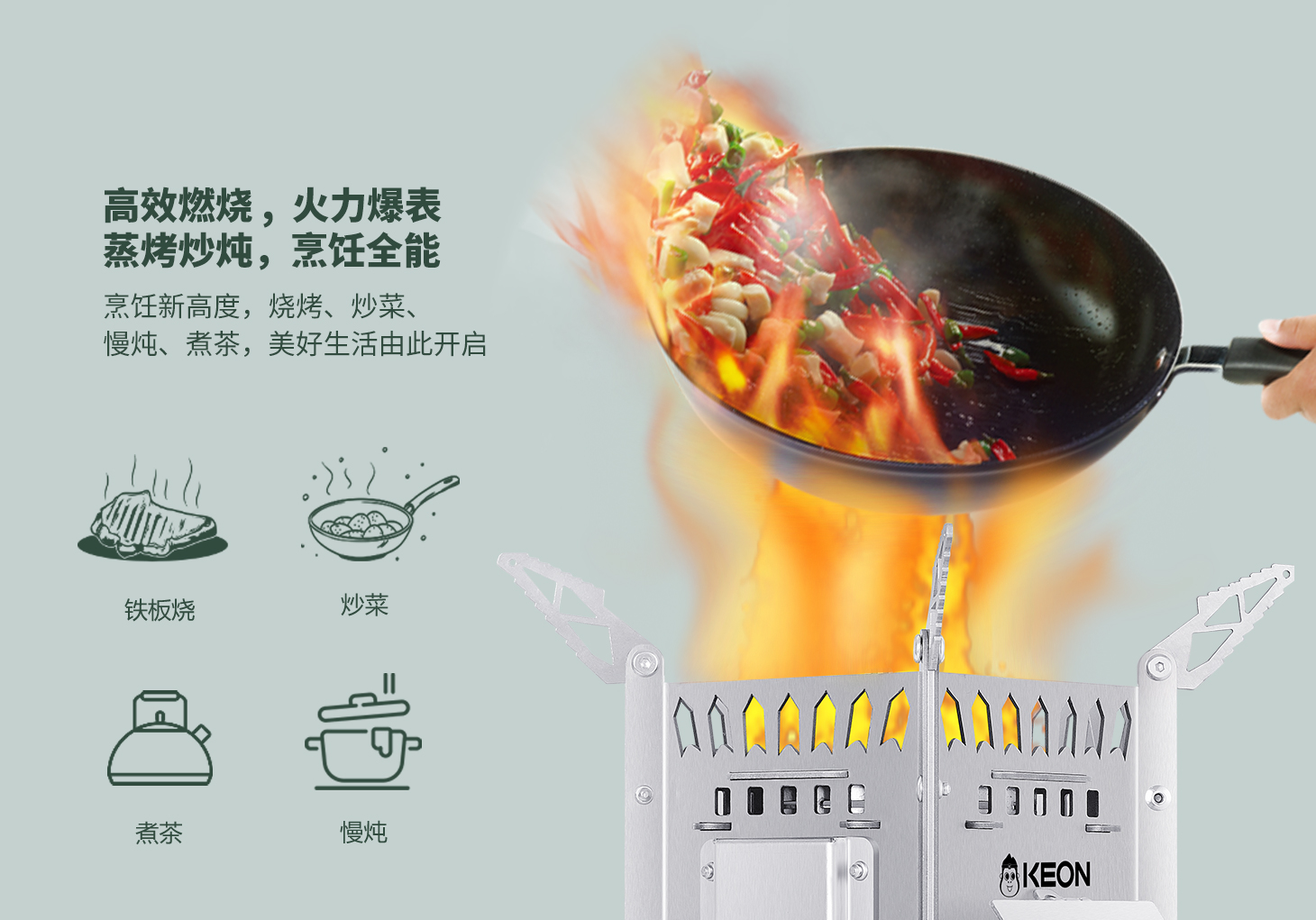傳統(tǒng)爐灶的嗆鼻濃煙模糊了山色,科恩提供全新解決方案,火箭爐S12設(shè)置3D繞流供氧系統(tǒng)??茖W(xué)供養(yǎng),猛火無(wú)煙,可調(diào)支撐腳,穩(wěn)立碎石坡地。熱效率超傳統(tǒng)爐具250%,省柴省心更省空間,從野餐到探險(xiǎn)全覆蓋。