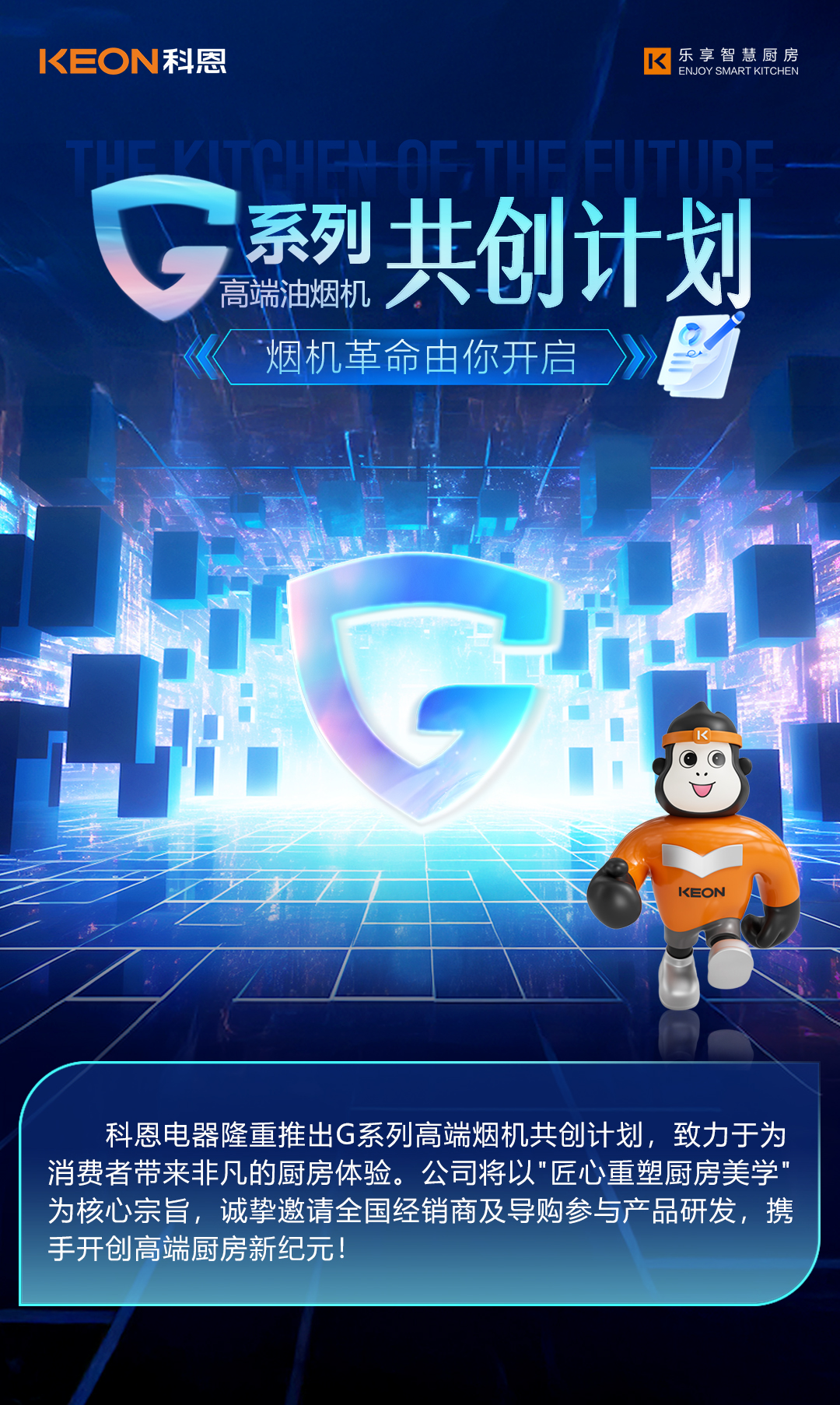 廚房,是家的心臟,承載著無數溫暖與美味??贫饕杂脩粢暯菫楹诵模?/span>為打造極致廚房體驗,正式啟動2025 G系列高端油煙機合作伙伴共創計劃。公司將秉持“以匠心重塑廚房美學”的產品理念,誠邀科恩全國經銷商、導購、售后參與產品研發,開啟金點子征集行動,共同攜手,開創高端廚房新紀元!