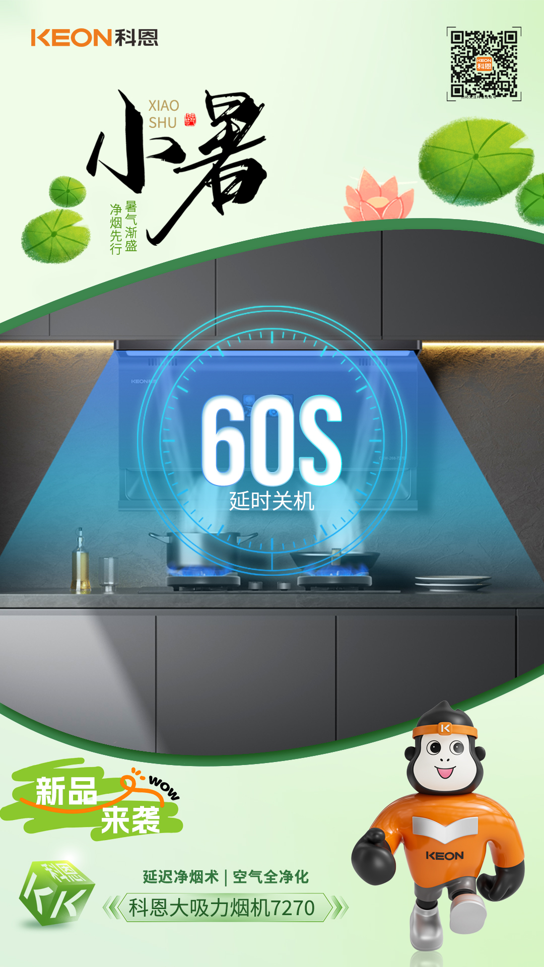 凈煙守護,暑夏清涼。從凈煙到清潔,從性能到顏值,科恩7270煙機用硬核實力重塑烹飪體驗。讓爆炒的煙火氣,化作生活的詩情畫意,讓每一次下廚,都成為清涼愜意的慢時光!