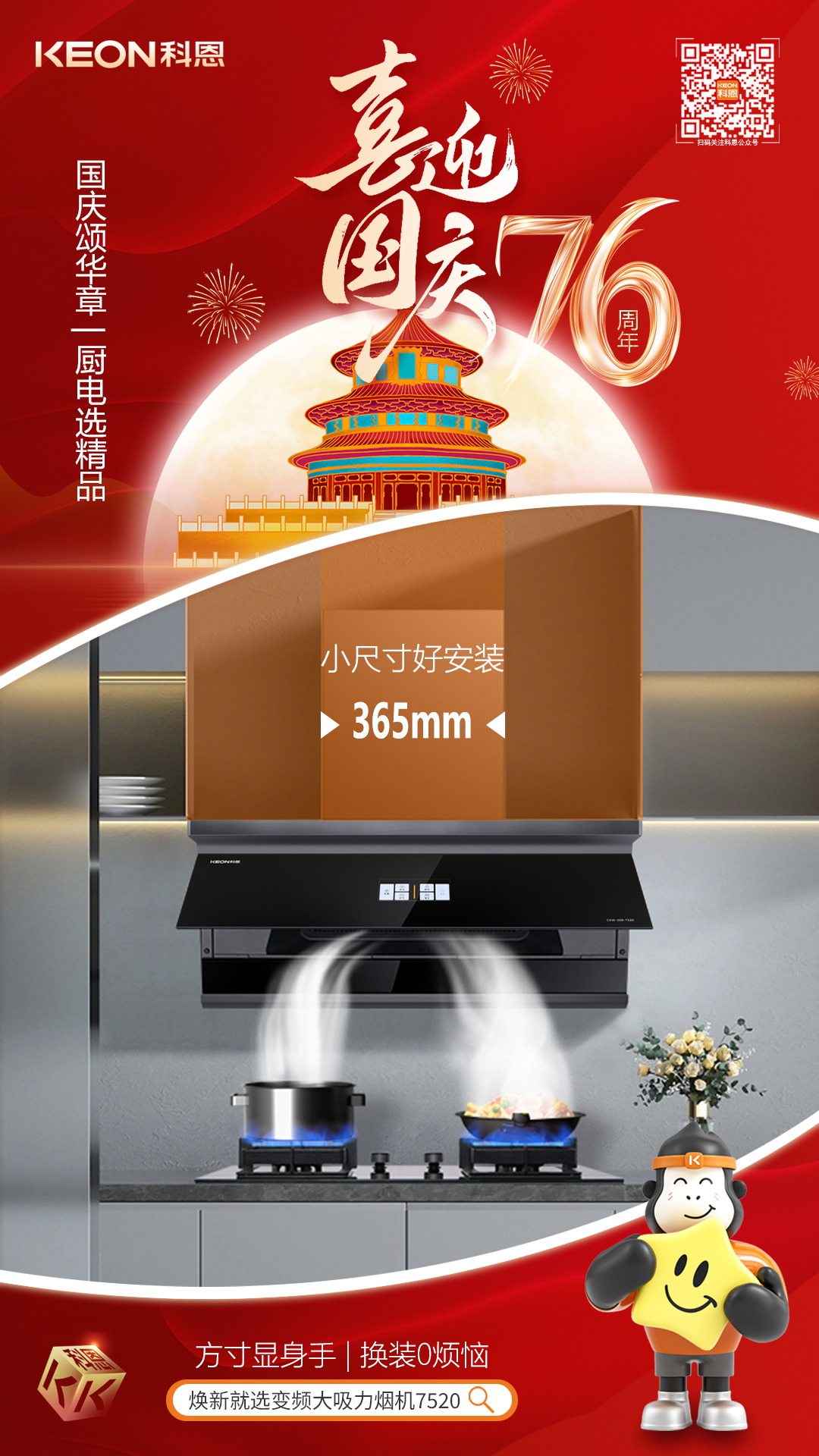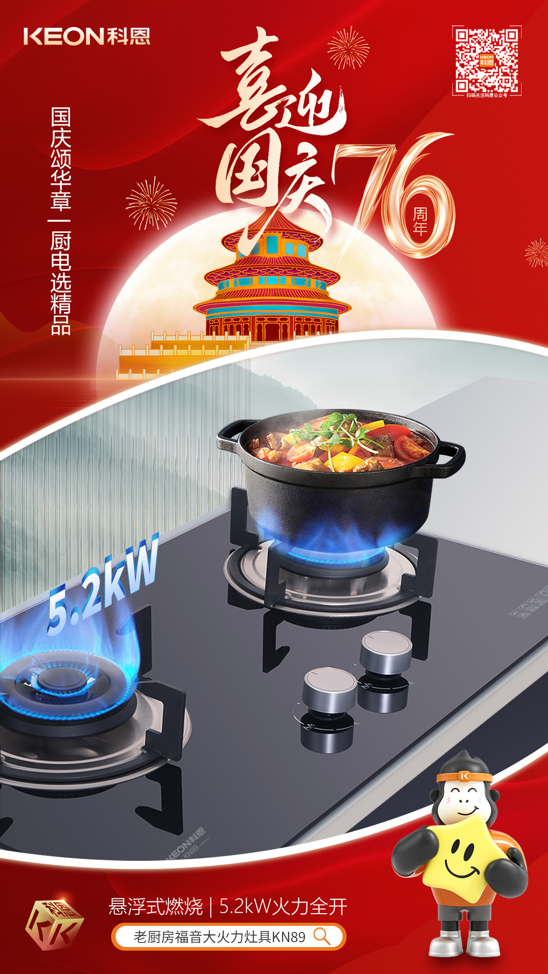 盛世華誕,家國同慶。科恩攜品質(zhì)廚電,以科技賦能團(tuán)圓時(shí)刻,重塑廚房呼吸美學(xué)。讓爆炒油煙遁于無形,讓家宴烹飪既高效又安心,守護(hù)每個(gè)家庭的假日煙火溫情。