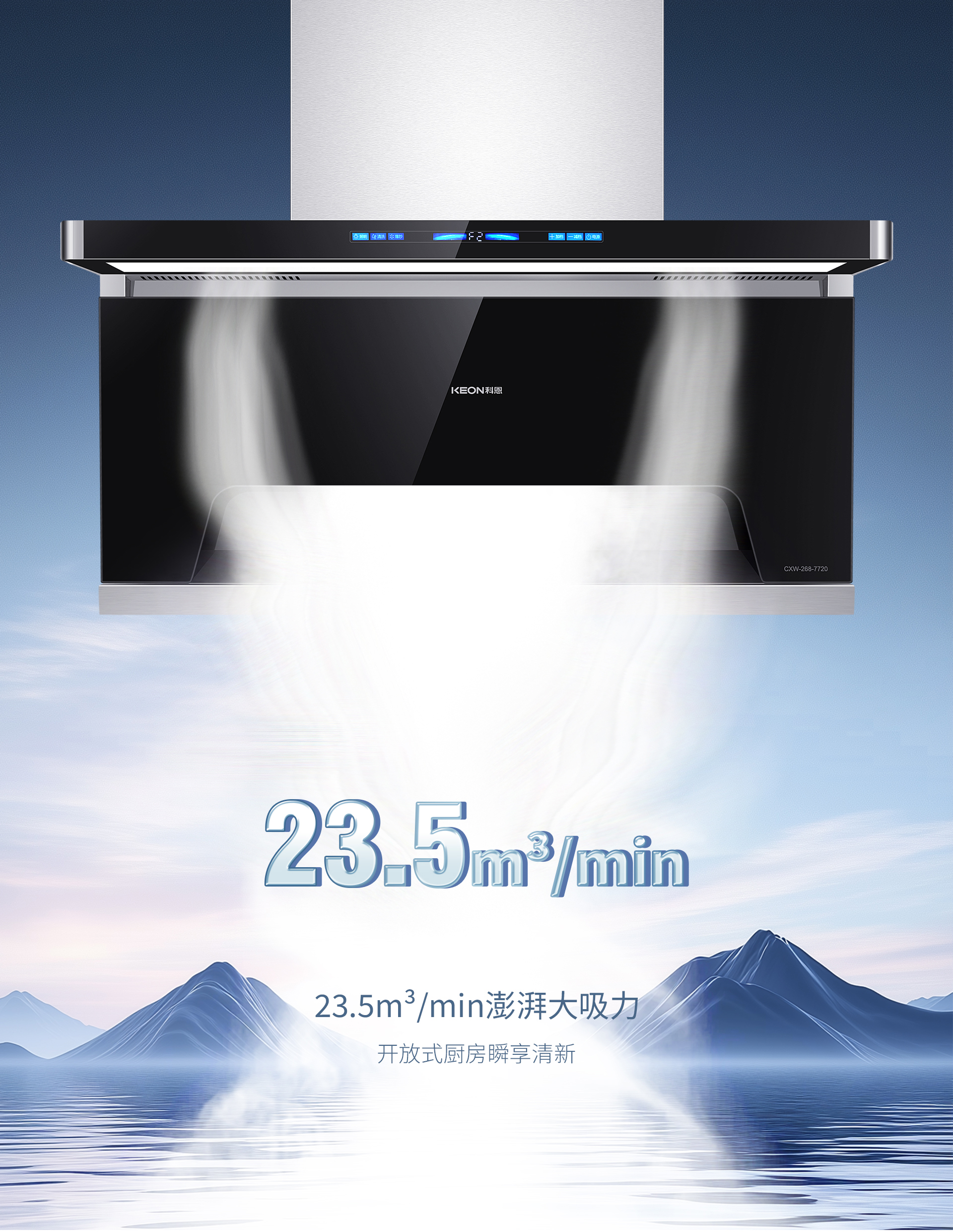 超薄顏值,靈動適配。廚房美學,始于顏值,895X40MM超薄靈動島設計,兩邊一體拉彎,流線質感盡顯背部鉆石切割,線條硬朗大氣,銀河星際觸摸屏,深邃藍光映廚藝嵌入櫥柜不突兀,獨立擺放更吸睛強吸速排,油煙無蹤。爆炒油煙猛,普通煙機難應對105°上仰前傾攏煙,鎖煙于擴散之前。颶風大吸力,為中國爆炒定制吸煙口負壓內傾設計,順勢直排不折返1000Pa強勁風壓,高峰時段不倒灌。下層攏煙上層防逃,1+12凈煙實力。