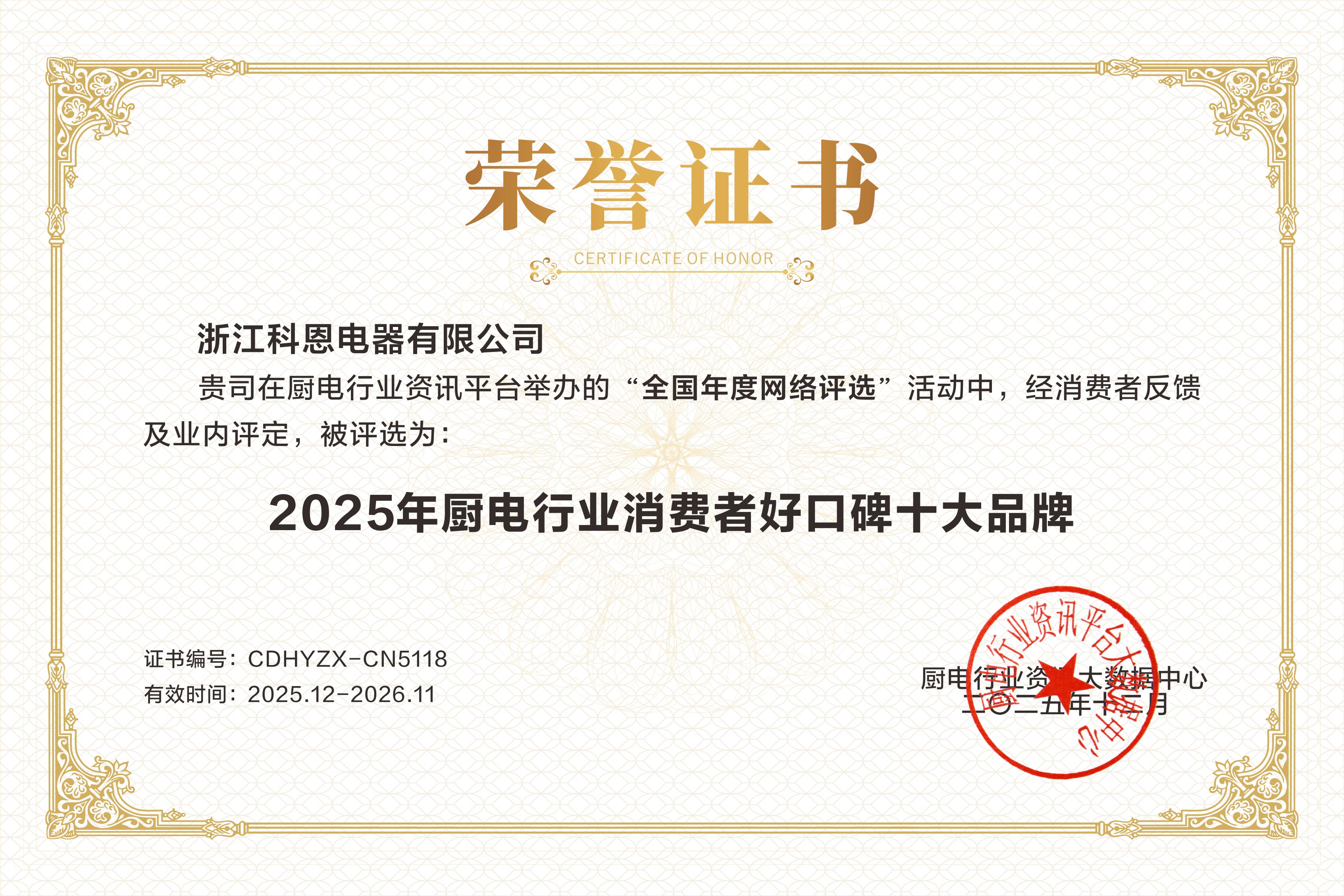 每一次獲獎,都是對過去的總結,更是對未來的承諾。科恩電器感謝每一位用戶的信賴與選擇,感恩行業伙伴的認可與同行。站在新的高度,科恩將承載這份榮耀與期待,繼續秉持匠心與創新精神,不僅致力于提升中國家庭的廚房生活品質,更愿與行業一同成長,共同推動廚電產業邁向更高水平的發展征程。