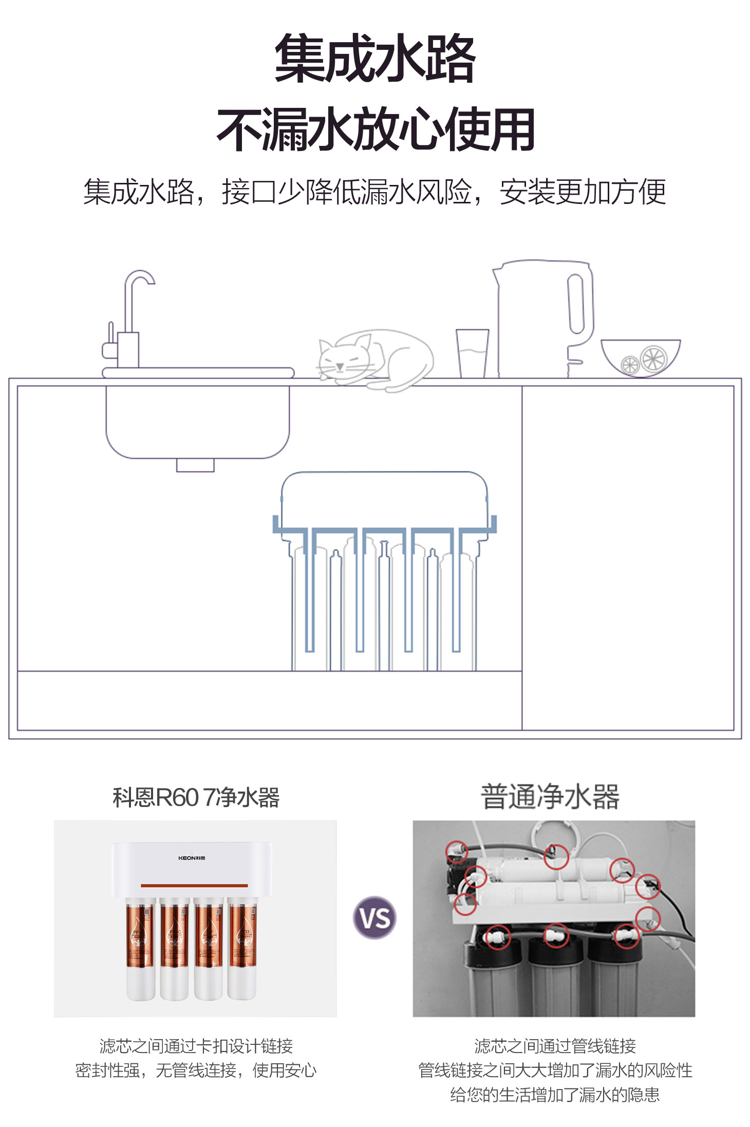 集成水路設計,接口少,降低漏水風險