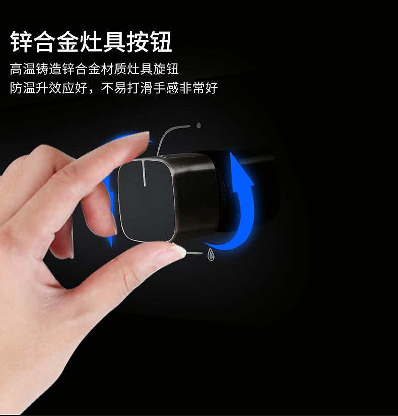 鋅合金精鑄材質灶具旋鈕,防溫升效應好,不易打滑手感極佳。