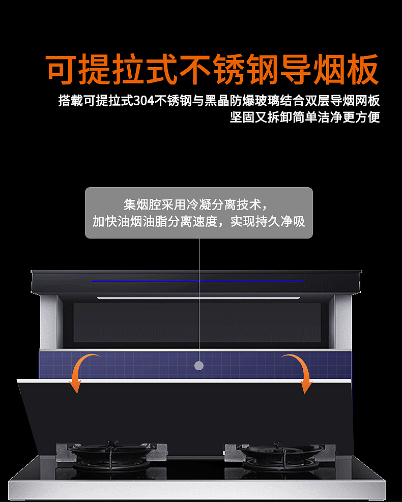 集煙腔采用冷凝分離技術,加快油煙分離速度,實現持久凈吸。