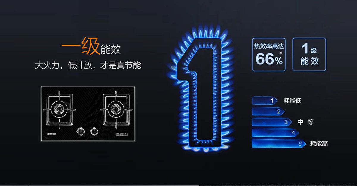 猛焰更節(jié)能,66%的熱效率,燃燒更充分,一級能效更省氣