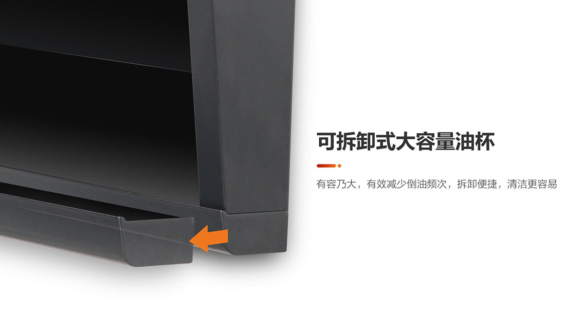 可拆卸式大容量油杯,有容乃大,有效減少倒油頻次,拆卸便捷,清潔更容易