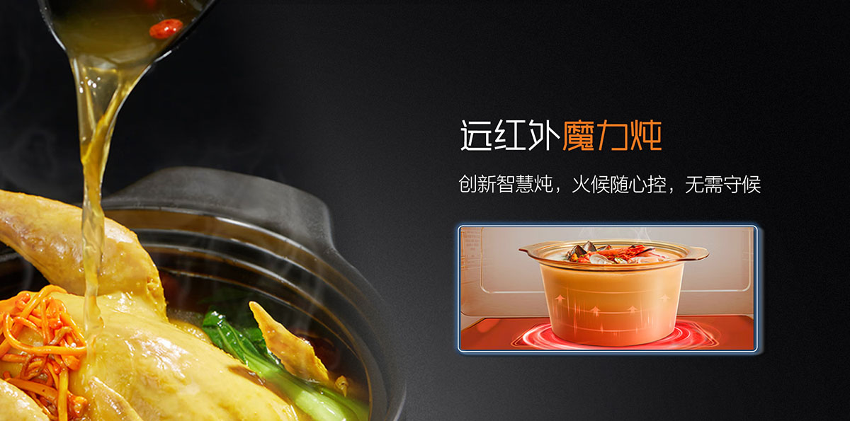 - 易潔微晶玻璃加熱盤,創(chuàng)新遠紅外魔力燉,火候隨心控,無需守候