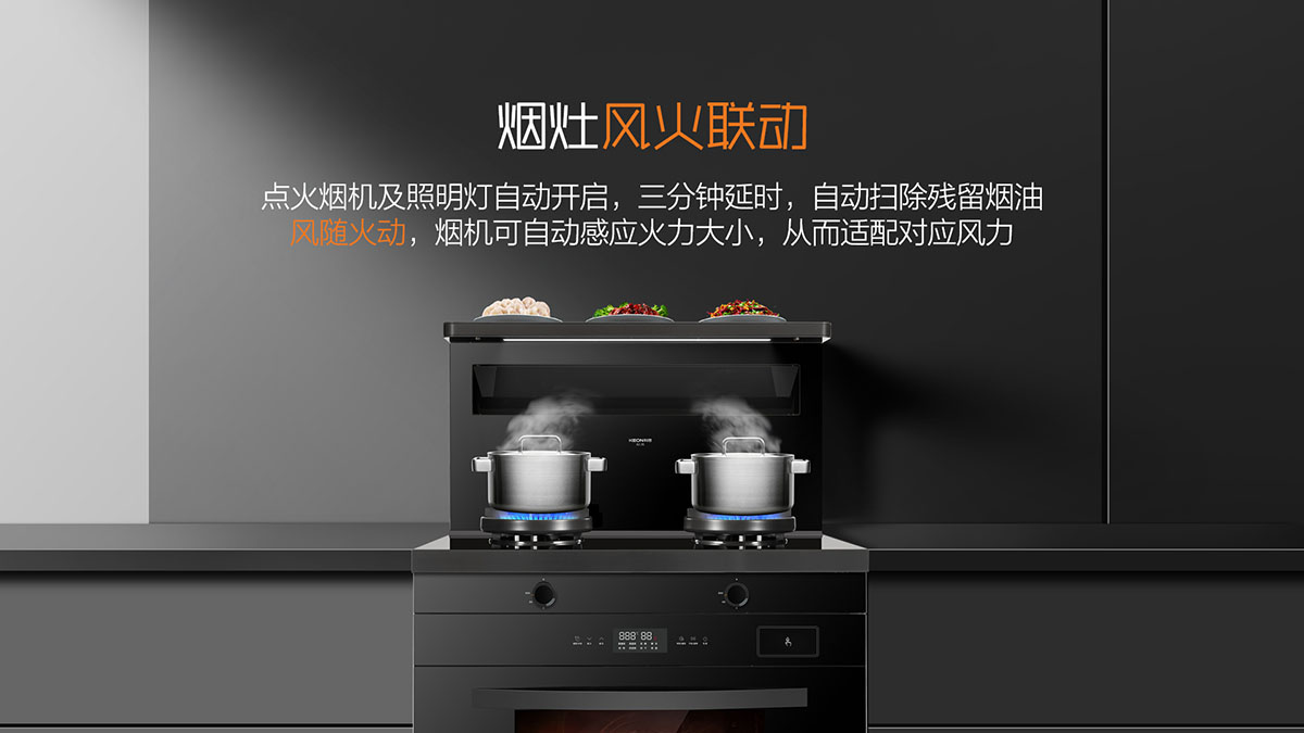 煙灶聯(lián)動,點火自動同步開啟油煙機
