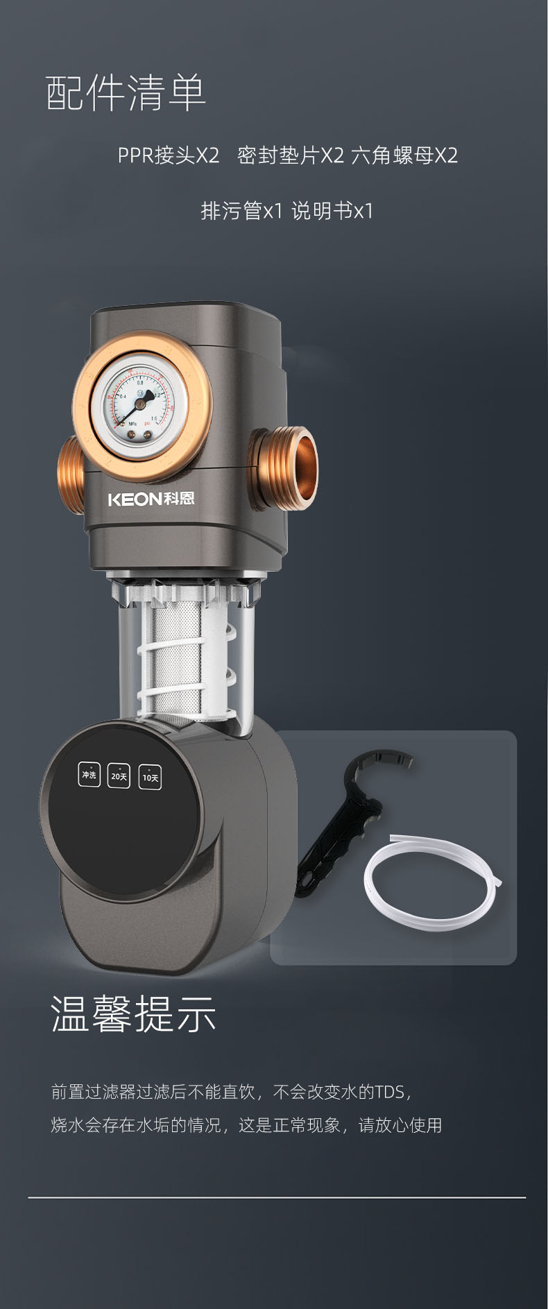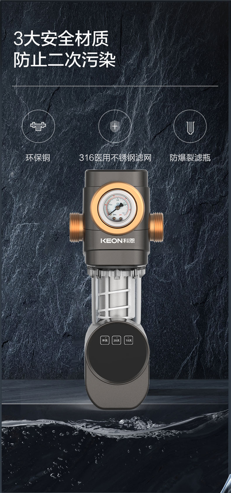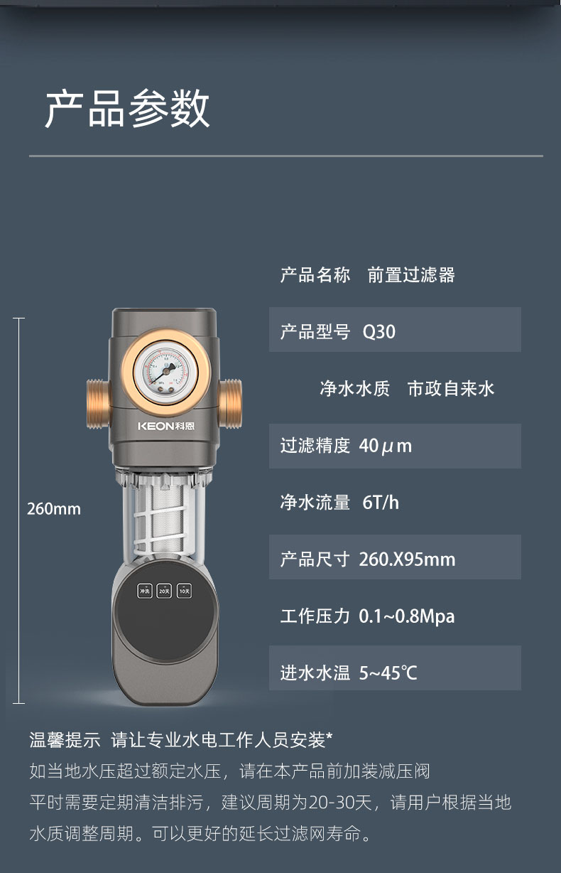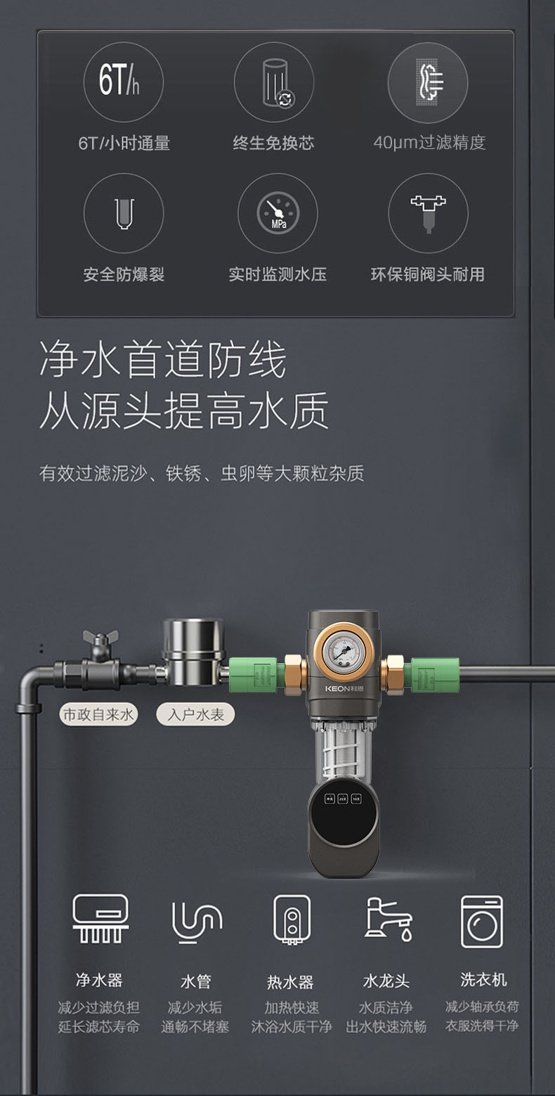 - 40μm過濾精度,精密不銹鋼濾網(wǎng),提升水質(zhì)