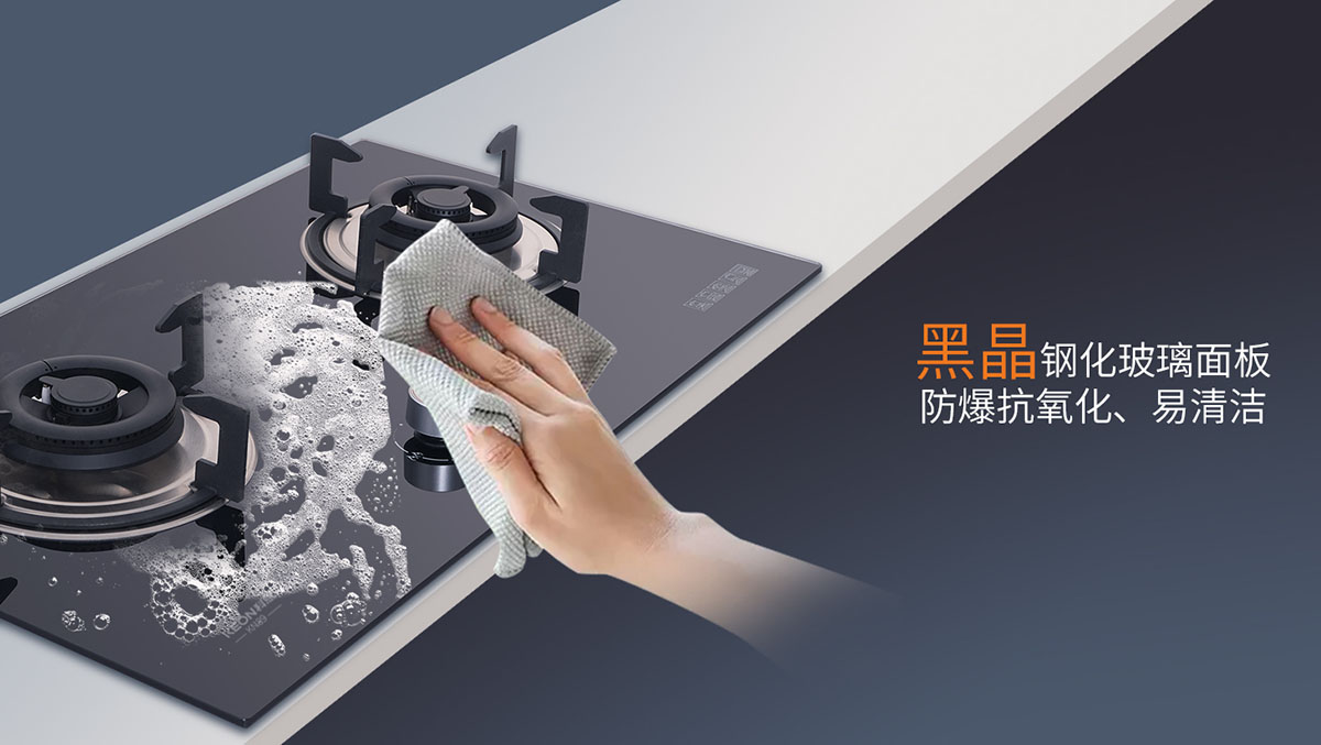 • 黑晶鋼化玻璃面板,防爆抗氧化、易清潔