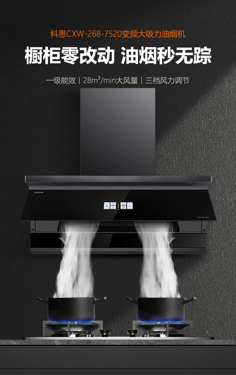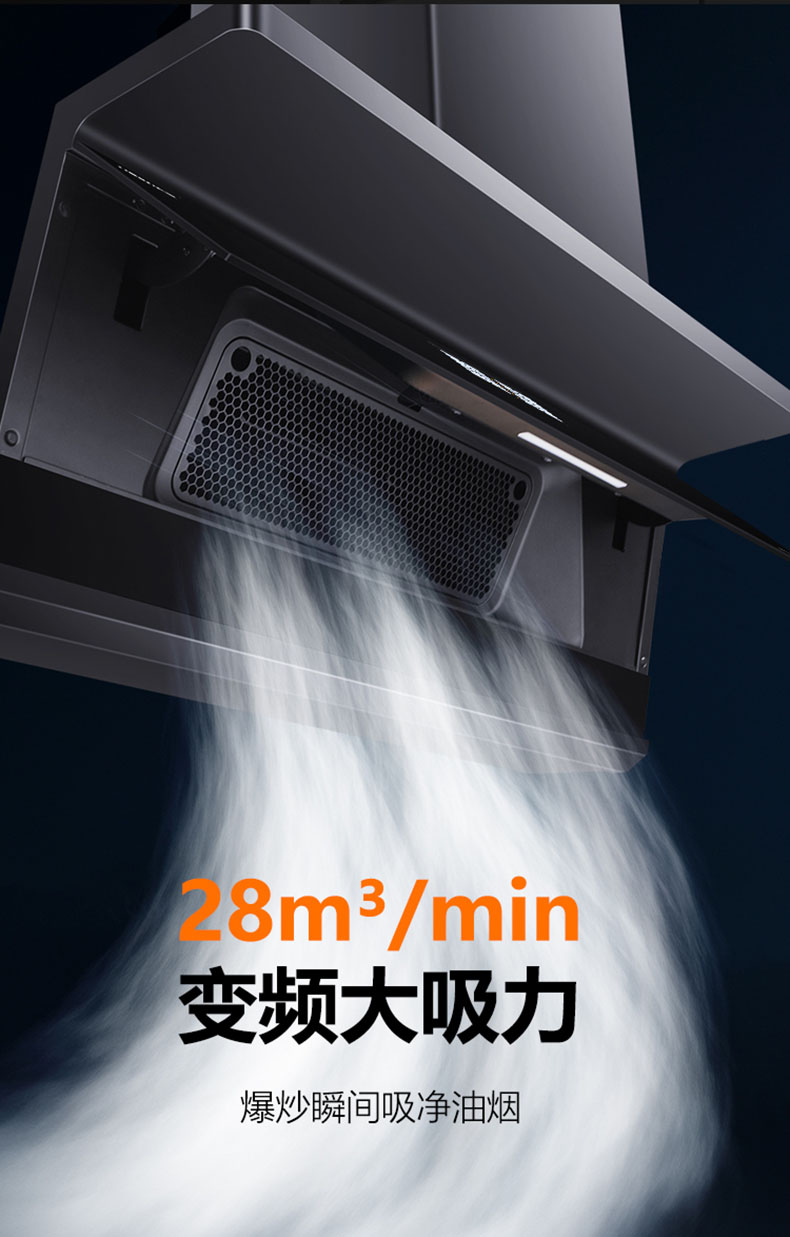 28m³/min颶風(fēng)吸力,爆炒瞬間吸凈油煙