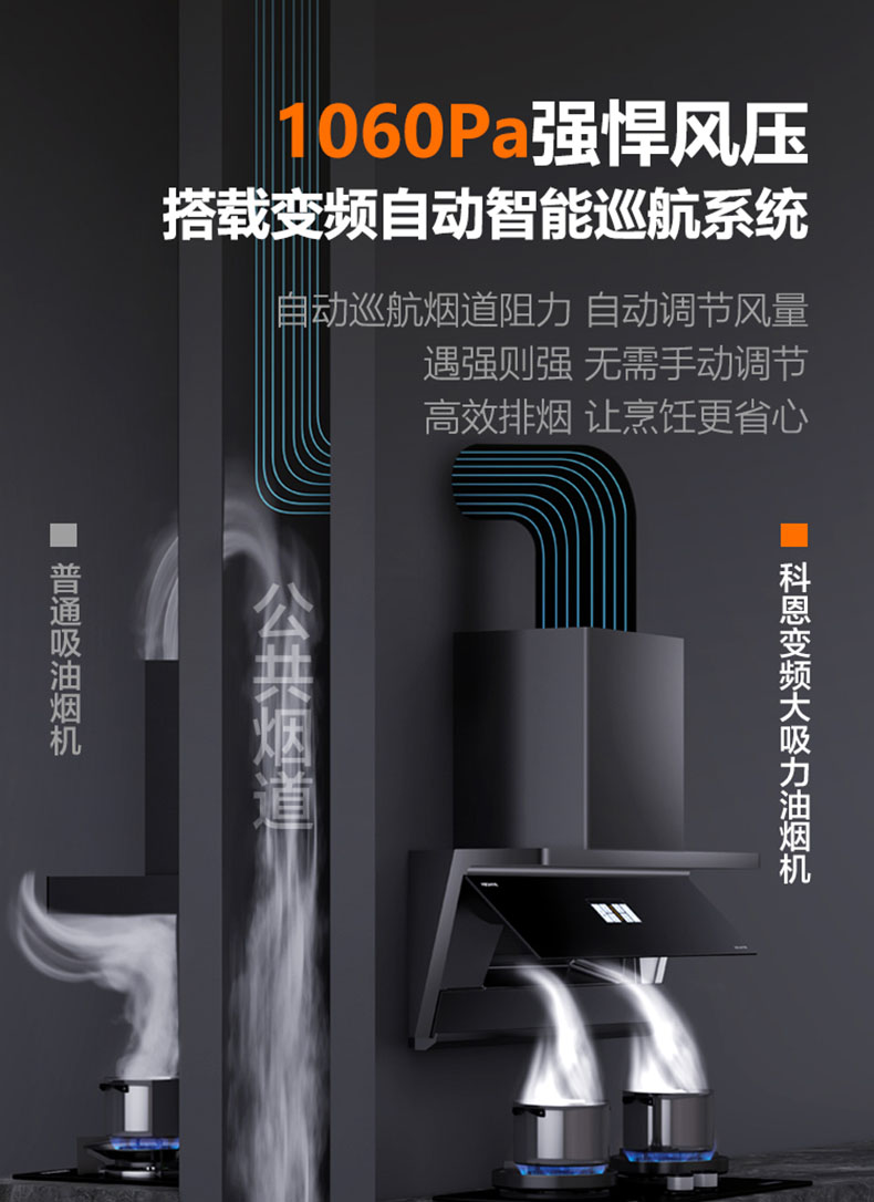 1060Pa強(qiáng)風(fēng)壓,高峰期烹飪排煙暢行無(wú)阻