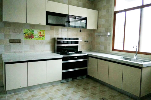 科恩浙江經(jīng)銷商提供的煙灶消+電烤箱、蒸汽爐廚房實景圖