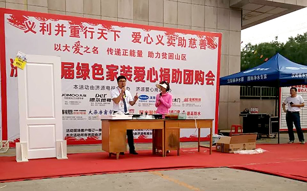 “義利并重行天下,愛(ài)心義賣助慈善”,7月2日,濟(jì)源首屆綠色家裝愛(ài)心捐助團(tuán)購(gòu)會(huì)在河南濟(jì)源市電視臺(tái)隆重舉辦,現(xiàn)場(chǎng)參展品牌以家居建材為主,產(chǎn)品齊全,所有所需用品一站式購(gòu)齊,省時(shí)、省力、省心、省錢。