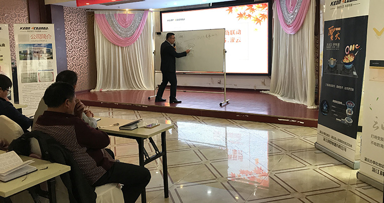 在會議現(xiàn)場,科恩電器育商學(xué)院王校長分析了整個廚電行業(yè)發(fā)展態(tài)勢,闡述了江蘇市場的重要性,全面剖析了灌云的市場情況,鼓勵灌云廣大經(jīng)銷商緊跟公司步伐,聚勢合力共同在促銷,宣傳工作上綜合發(fā)力,并指明了未來工作重心和發(fā)展方向。并以公司多場終端促銷活動作為引子旁征博引,用豐富的語言深刻形象介紹了產(chǎn)品包裝、品牌傳播、門店建設(shè)、渠道建設(shè)與整合營銷等多項(xiàng)實(shí)戰(zhàn)技能,以幽默風(fēng)趣的語言,深入淺出的為在場各位經(jīng)銷商傳授了最深刻的經(jīng)驗(yàn)。